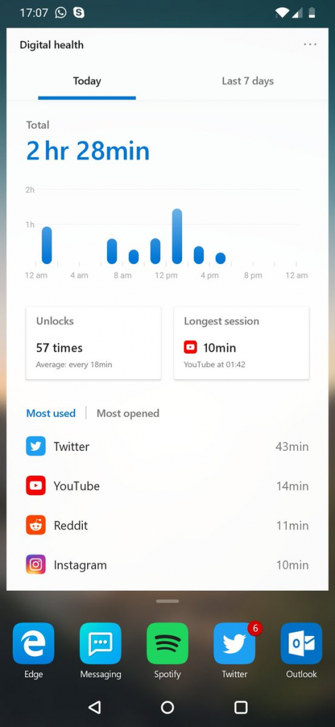 据 The Verge 报导,微软正在为向 Android 用户推出的 Microsoft Launcher 运用增加自己的数字健康功用。据了解,该功用将答使用户盯梢屏幕时刻、检查运用运用情况乃至是解锁手机的次数,而且与谷歌仅在 Android P 推出的 Digital Wellbeing 比较,Microsoft Launcher 支撑 Android 2.5 及更高版别,能为更多的用户供给数字健康功用。
